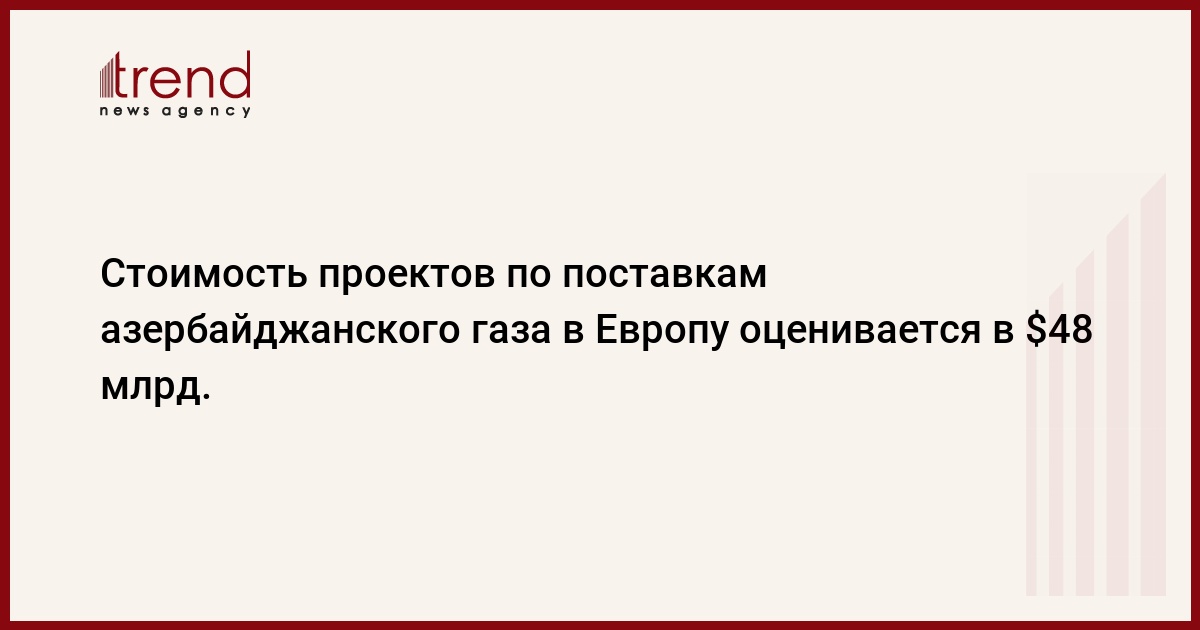 БАКУ /Trend/ - Инвестиции в реализацию проектов, направленных на поставку азербайджанского газа в Европу, достигнут 45-48 миллиардов долларов.