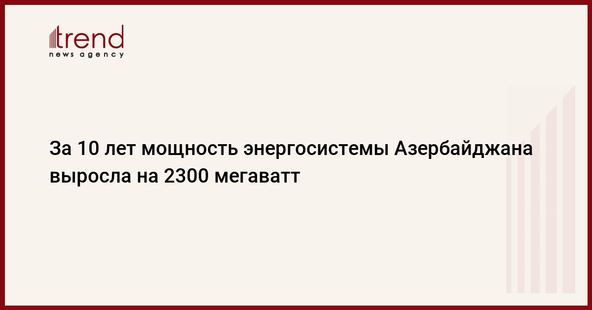 За 10 лет мощность энергосистемы Азербайджана выросла на 2300 мегаватт