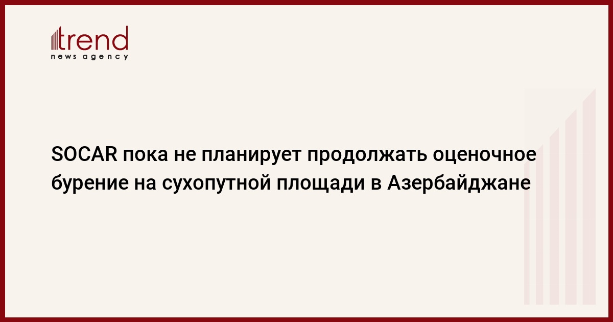 БАКУ /Trend/ - Компания SOCAR (Госнефтекомпания Азербайджана) пока не планирует восстанавливать оценочное бурение в рамках своих планов по созданию подземного газохранилища в Нахчыванской Автономной Республике (НАР).