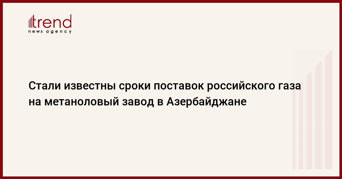 БАКУ /Trend/ - Поставки газа на метаноловый завод азербайджанской компании AzMeCo со стороны OOO "Газпром экспорт" начнутся 20-21 сентября.