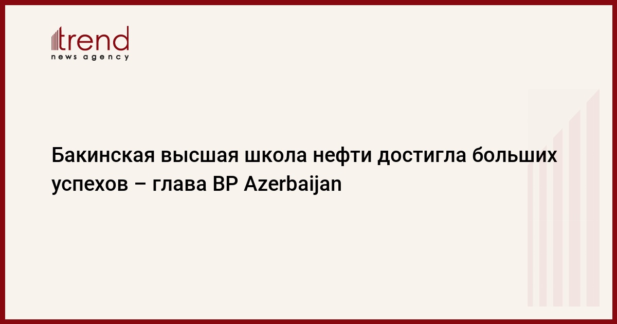 БАКУ /Trend/ - Бакинская высшая школа нефти (БВШН) достигла больших успехов. Об этом сказал региональный президент BP по Азербайджану, Турции и Грузии Гордон Биррел на торжественном мероприятии, состоявшемся в БВШН в связи с началом учебного года.