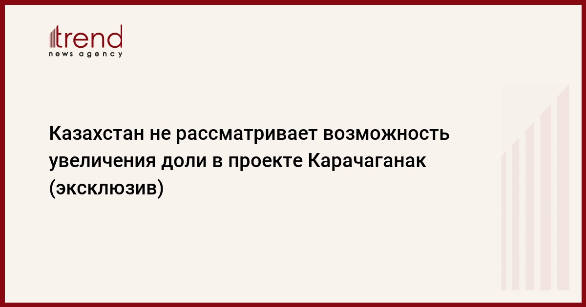 БАКУ /Trend/ - Казахстан на данный момент не рассматривает возможность приобретения доли британской нефтегазовой компании BG Group plc в проекте Карачаганак и тем самым увеличения своей доли в проекте, сообщили Trend в понедельник в министерстве энергетики страны.