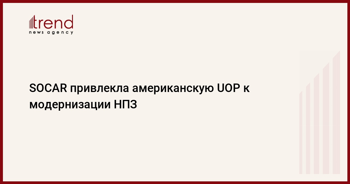БАКУ /Trend/ - SOCAR (Госнефтекомпания Азербайджана) подписала контракт с американской компанией UOP по лицензированию строительства ряда установок в рамках модернизации бакинского НПЗ имени Гейдара Алиева.