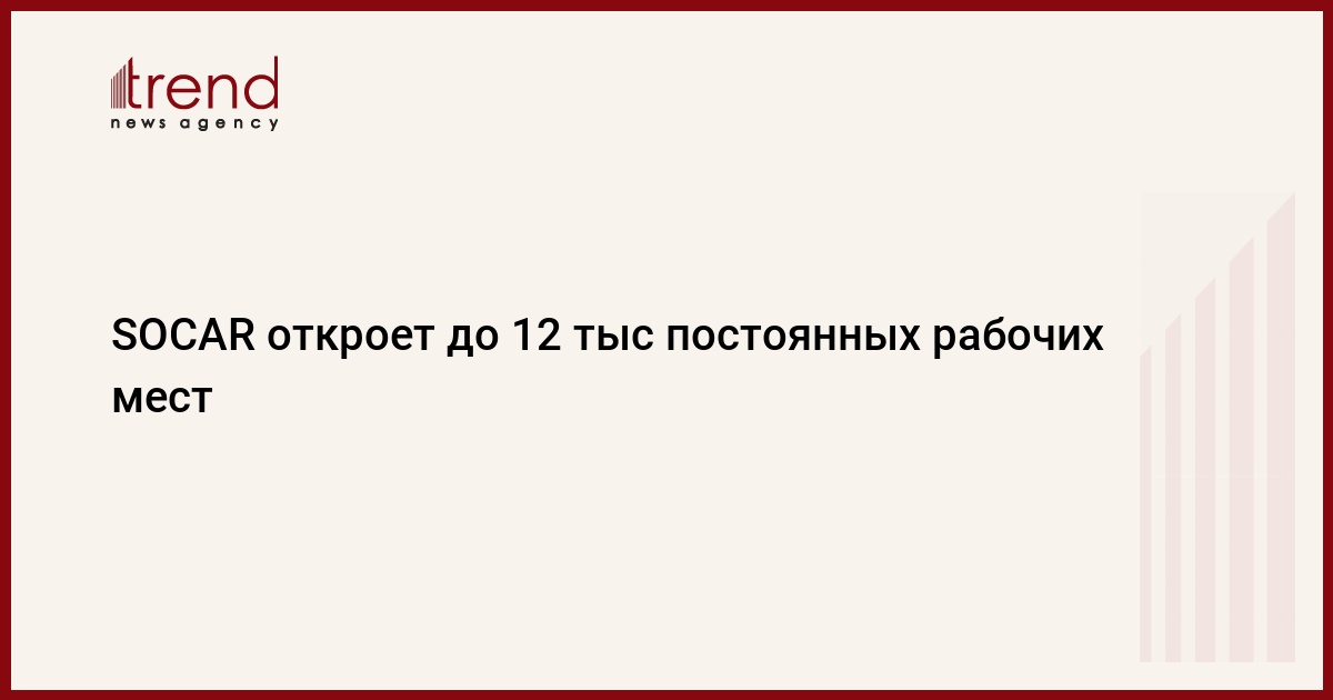 БАКУ /Trend/ - С реализацией крупных проектов компания SOCAR (Госнефтекомпания Азербайджана) откроет 10-12 тысяч постоянных рабочих мест.