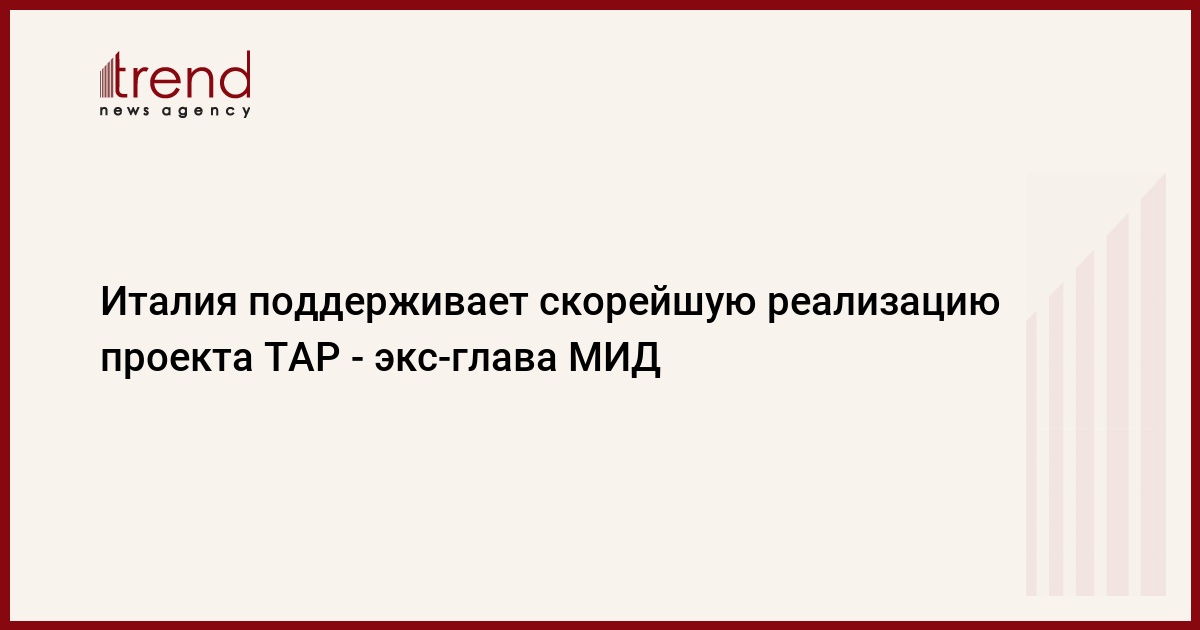 БАКУ /Trend/ - Италия поддерживает скорейшую реализацию проекта строительства Трансадриатического газопровода (ТАР), который соединит Азербайджан через Турцию и Албанию с Грецией и Италией, сказал в четверг журналистам в Баку экс-министр иностранных дел Италии Франко Фраттини.