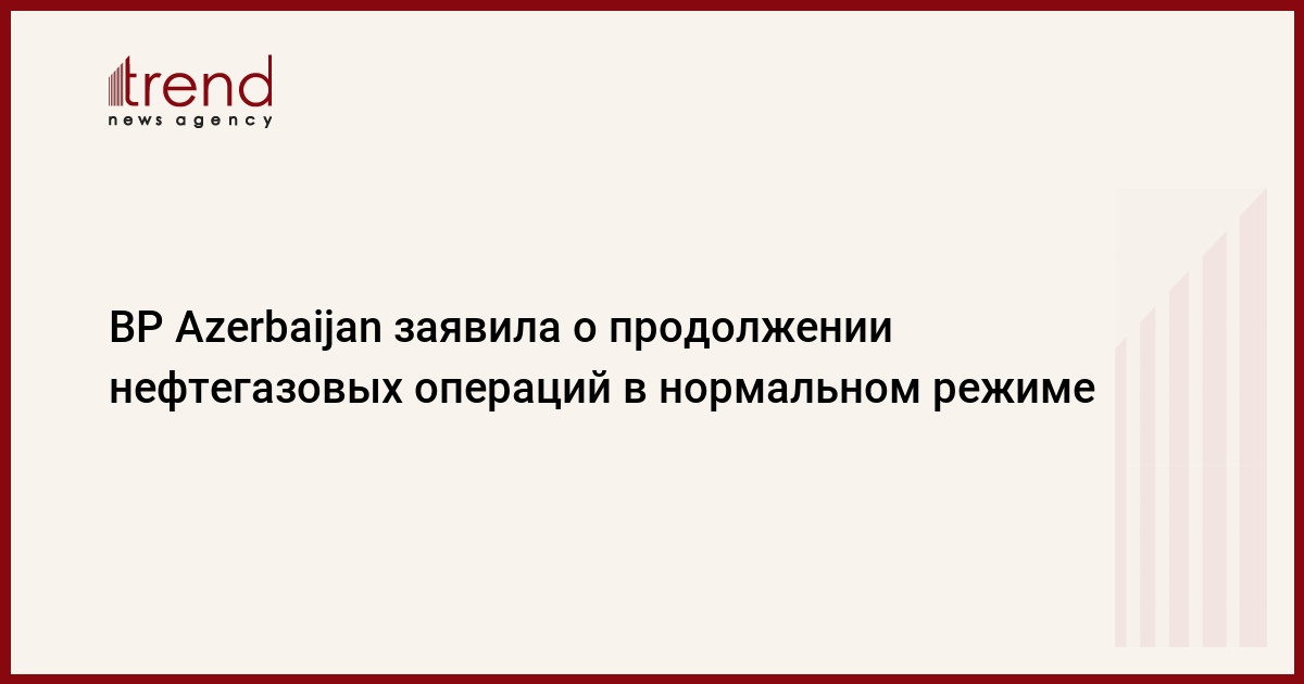 БАКУ /Trend/ - Операции компании BP в Азербайджане по добыче и транспортировке нефти и газа продолжаются в нормальном режиме, сказала Trend во вторник глава пресс-службы компании Тамам Баятлы.