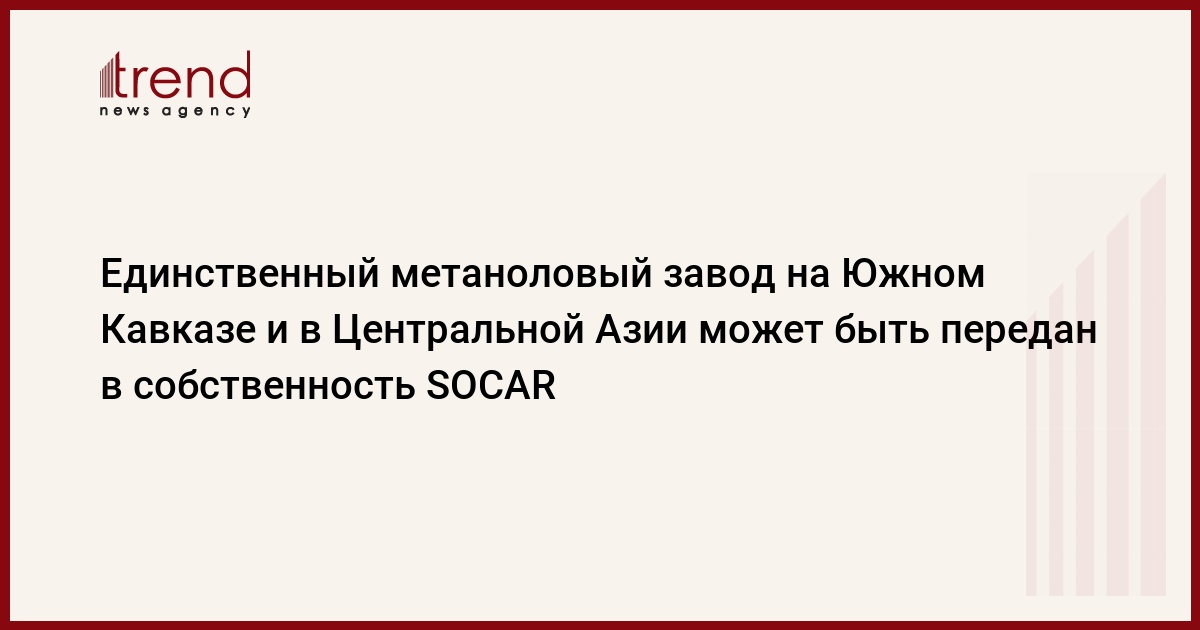 "Оценочные компании завершают работу. В зависимости от результатов оценки активы могут быть переданы SOCAR, и компания станет владельцем метанолового завода", - сказал в среду журналистам вице-президент SOCAR по экономическим вопросам Сулейман Гасымов.