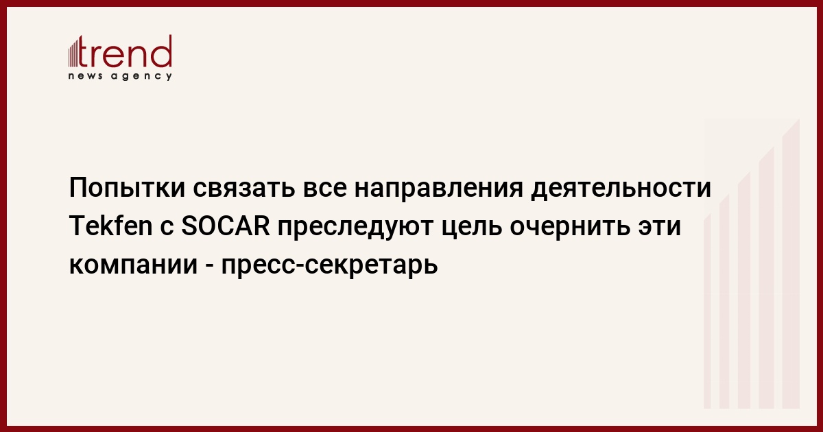БАКУ /Trend/ - Попытки связать все направления деятельности одного из крупнейших холдингов Турции Tekfen с азербайджанской госкомпанией SOCAR преследуют цель очернить эти компании путем манипуляции лживыми фактами и цифрами, сообщил в четверг Trend пресс-секретарь SOCAR Низамеддин Гулиев.
