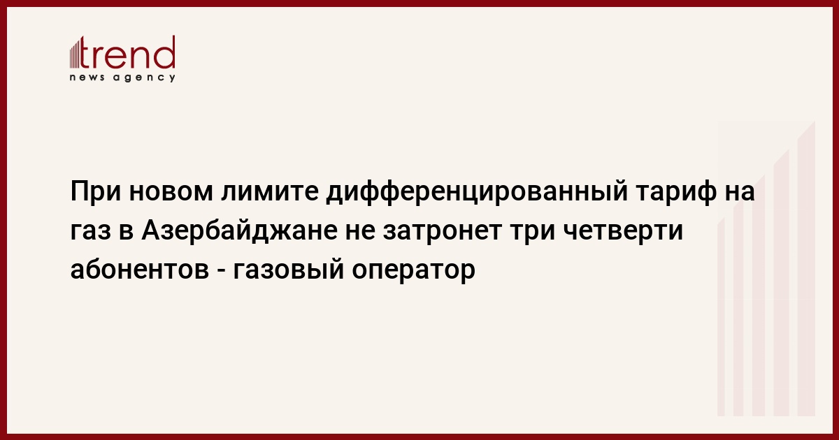 Согласно данному решению, тарифы на природный газ для потребителей из группы населения, годовой объем потребления которых не превышает 1500 кубометров, был оставлен на уровне 0,1 маната за один кубометр. Стоимость одного кубометра газа для населения, объем годового потребления которых превышает 1500 кубометров, была установлена на уровне 0,2 маната.