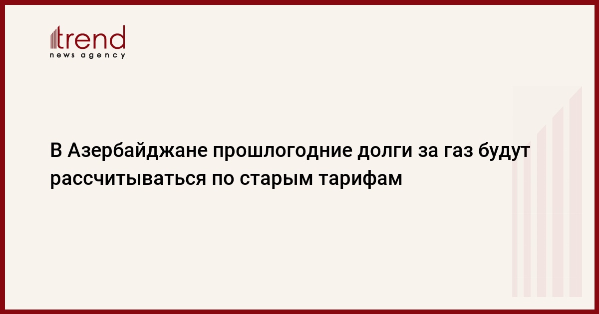 БАКУ /Trend/ - В Азербайджане расчеты по задолженностям за использованный природный газ, возникшим до вступления в силу новых тарифов, будут осуществляться по тем тарифам, которые действовали в период возникновения задолженностей, говорится в сообщении секретариата Тарифного (ценового) совета, распространенном во вторник.