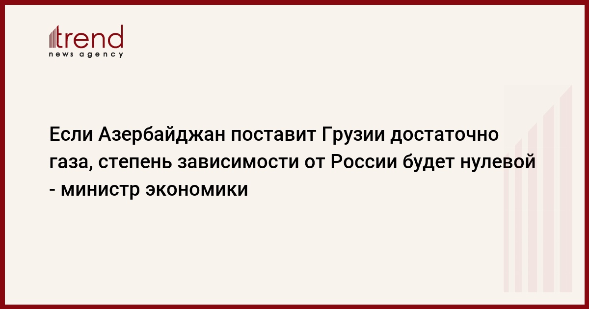 БАКУ /Trend/- Если наш стратегический партнер -Азербайджан, и госкомпания SOCAR поставит Грузии достаточный объём газа, степень зависимости от России будет нулевой, заявил журналистам министр экономики и устойчивого развития Грузии Георгий Гахария, давая оценку новому соглашению, заключенному с «Газпромом», пишет в четверг "Грузия-Онлайн".