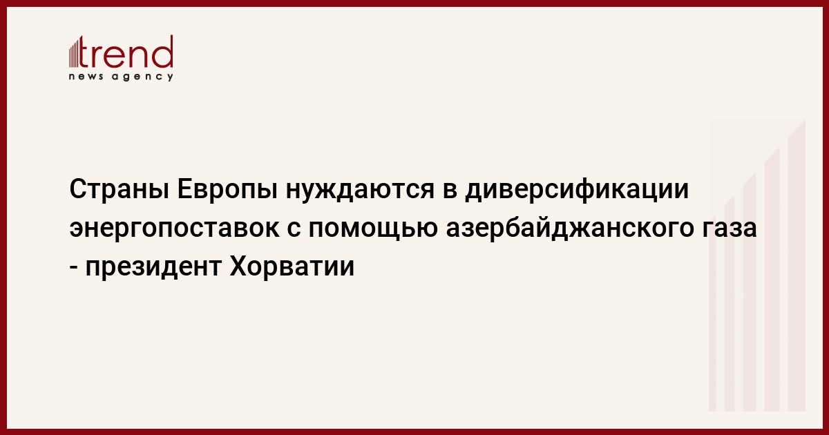 БАКУ /Trend/ - Европейские страны нуждаются в диверсификации поставок энергоносителей с помощью азербайджанского газа, сказала президент Хорватии Колинда Грабар-Китарович в видеообращении к участникам IV международного форума Caspian Energy 2017, проходящего в среду в Баку.