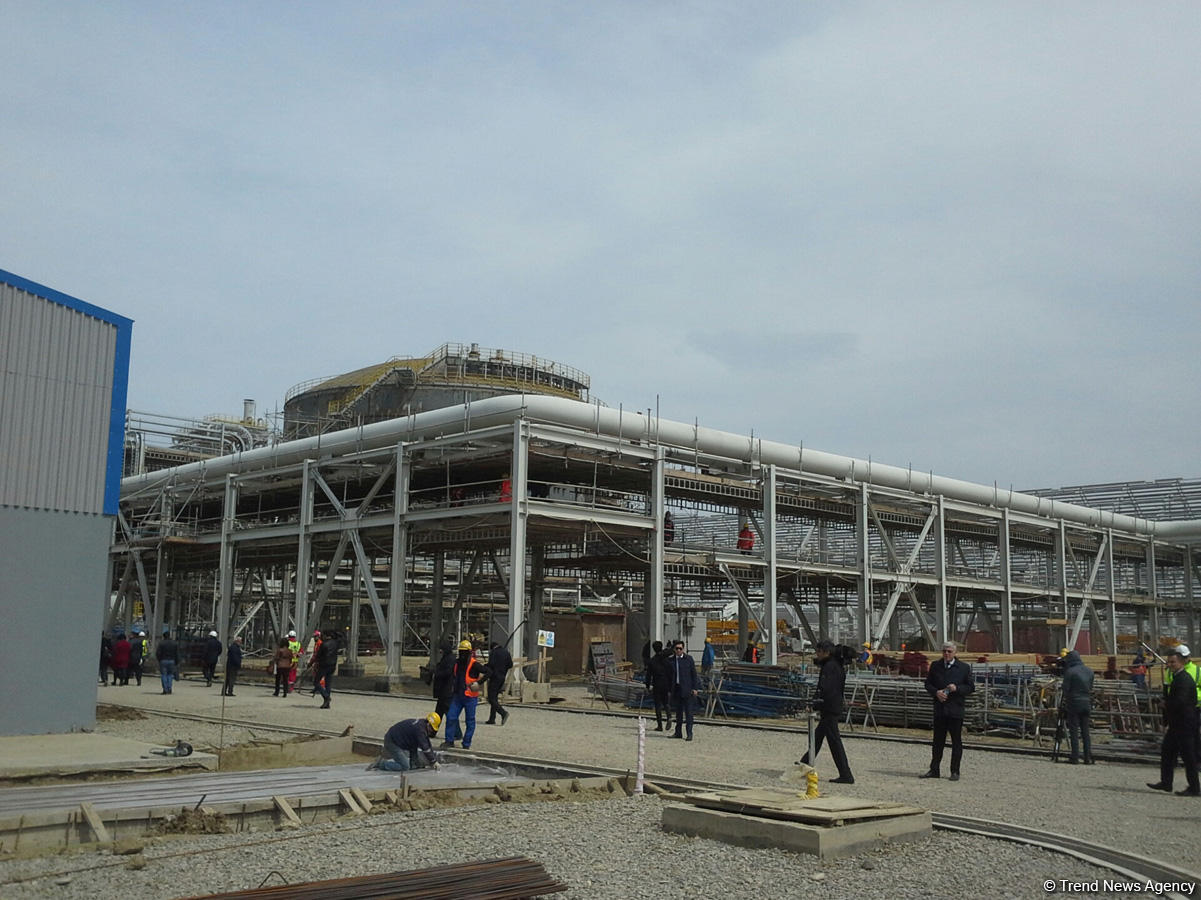 "Необходимые коммуникационные сооружения (газ, электричество и водоснабжение) сейчас обсуждаются, по некоторым уже ведутся работы, и в течение года они должны быть завершены. Штат сотрудников завода после запуска в эксплуатацию составит примерно 350 человек. В настоящее время в строительные работы вовлечено примерно три тысячи человек", - сказал Джафаров.