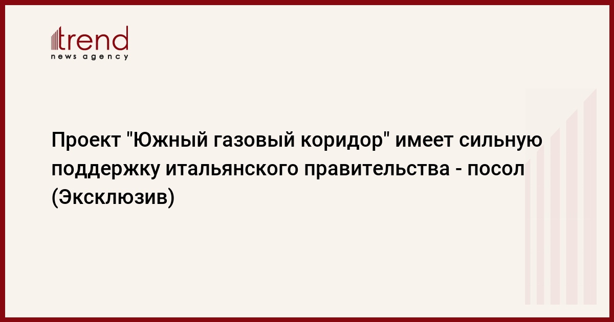 БАКУ /Trend/ - Проект "Южный газовый коридор" имеет сильную и последовательную поддержку со стороны итальянского правительства, сказал в четверг Trend посол Италии в Баку Джампаоло Кутилло.