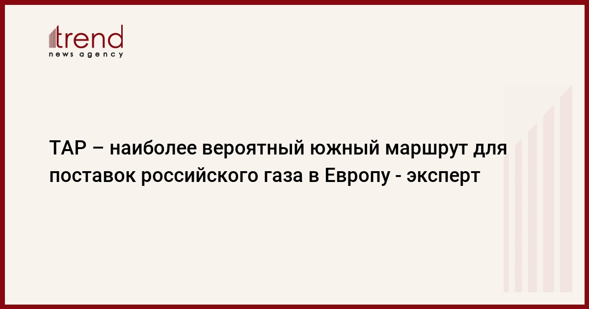 БАКУ /Trend/ - Российский газ из "Турецкого потока", наиболее вероятно, пойдет в Европу по Трансадриатическому трубопроводу (ТАР), считает независимый аналитик по Турции и вопросам энергобезопасности на пространстве Евразии Гарет Уинроу (Gareth Winrow).