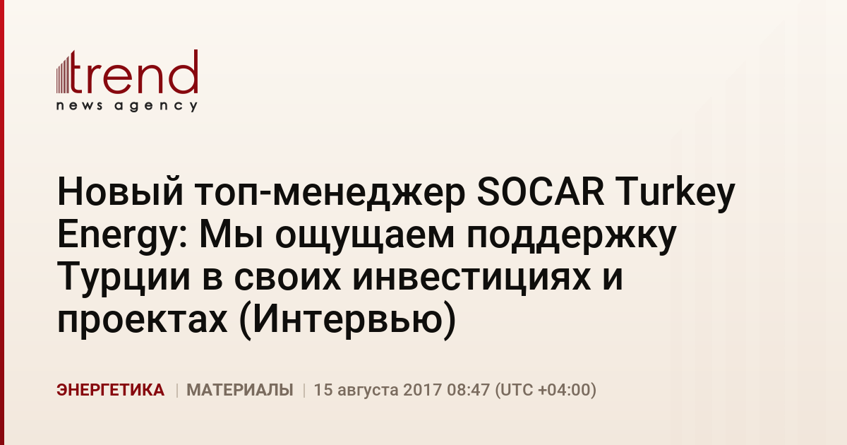 Интервью Trend с новоназначенным руководителем по внешним связям компании SOCAR Turkey Energy (турецкая "дочка" азербайджанской госкомпании SOCAR) Муратом Лекомпте.