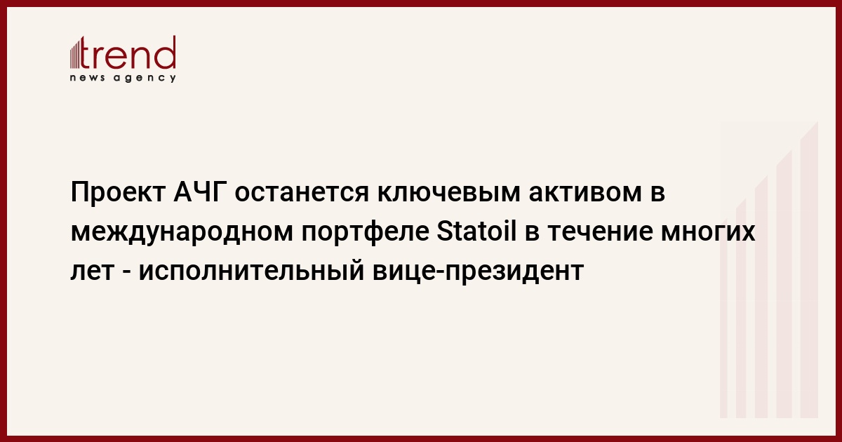 Проект разработки месторождений «Азери-Чираг-Гюнешли» останется ключевым активом в международном портфеле Statoil в течение многих лет, добавил Бахер.