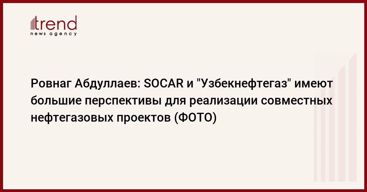 Согласно сообщению азербайджанской госкомпании, об этом сказал президент SOCAR Ровнаг Абдуллаев на встрече с председателем правления «Узбекнефтегаз» Алишером Султановым.