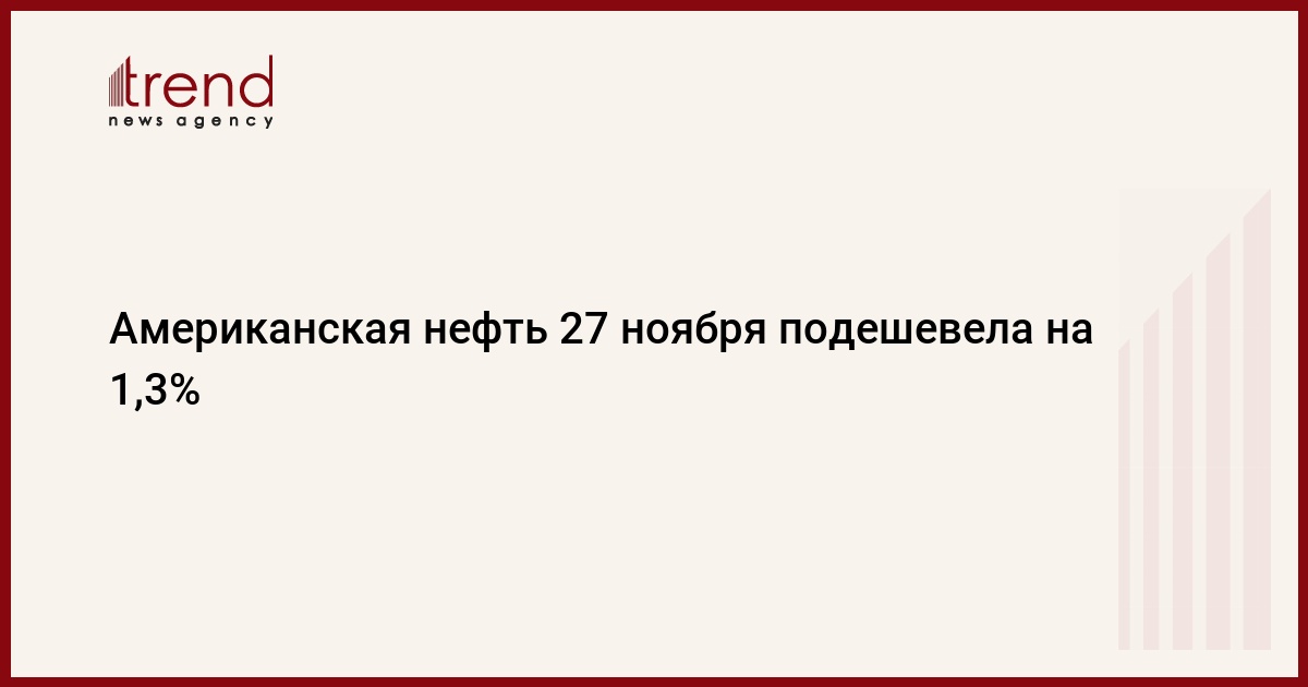 БАКУ /Trend/ - Средняя цена на североамериканскую нефть 27 ноября составила 60,36 доллара за баррель, что на 0,84 доллара меньше предыдущего показателя, сообщил Trend во вторник источник на нефтегазовом рынке.