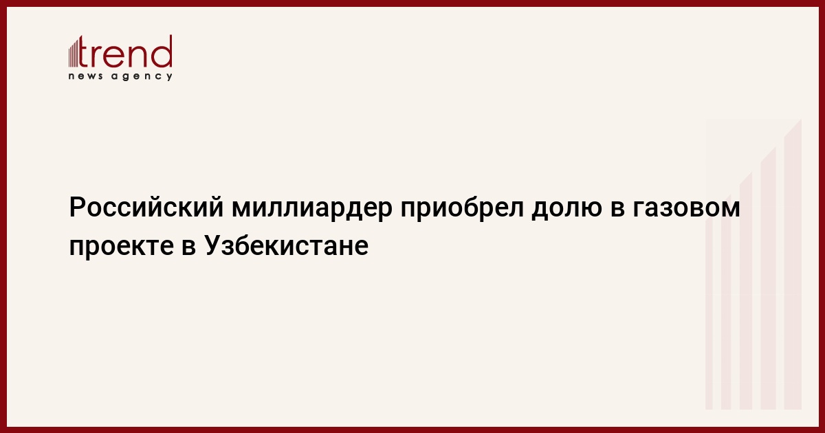 БАКУ /Trend/ - Совладелец Globaltrans и Global Ports Андрей Филатов получил 37,5 процентов в проекте разработки крупного месторождения и строительства газохимического комплекса в Узбекистане.