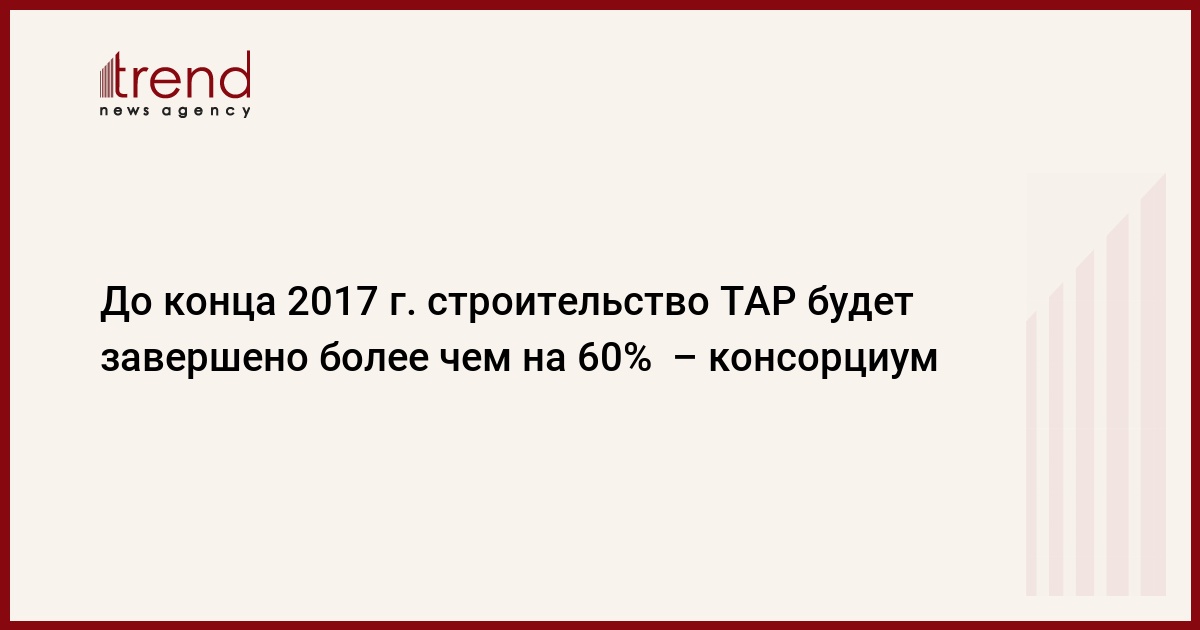 БАКУ/Trend/ - До конца этого года строительство Трансадриатического трубопровода (TAP) будет завершено более чем на 60 процентов, сказала в среду Trend глава отдела по коммуникациям консорциума TAP Лиза Гиверт.