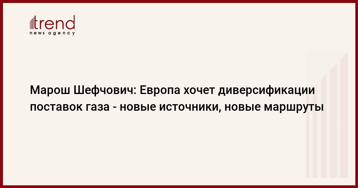 БАКУ/Trend/ - Европа заинтересована в диверсификации источников и маршрутов поставок газа, сказал «Energy Post» вице-президент Еврокомиссии по вопросам Энергетического союза Марош Шефчович.