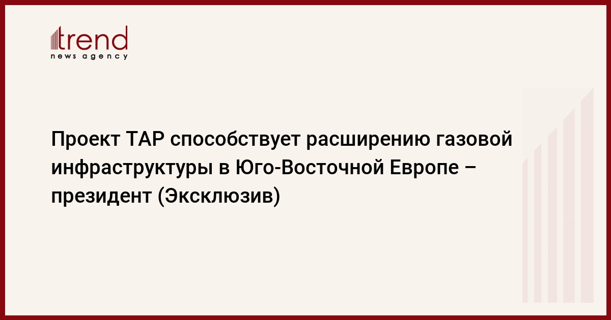 БАКУ /Trend/ - Проект Трансадриатического трубопровода (TAP), который предусматривает транспортировку азербайджанского газа в Европу, будет способствовать расширению газовой инфраструктуры в Юго-Восточной Европе, сказал в интервью Trend президент TAP Вальтер Пираер.