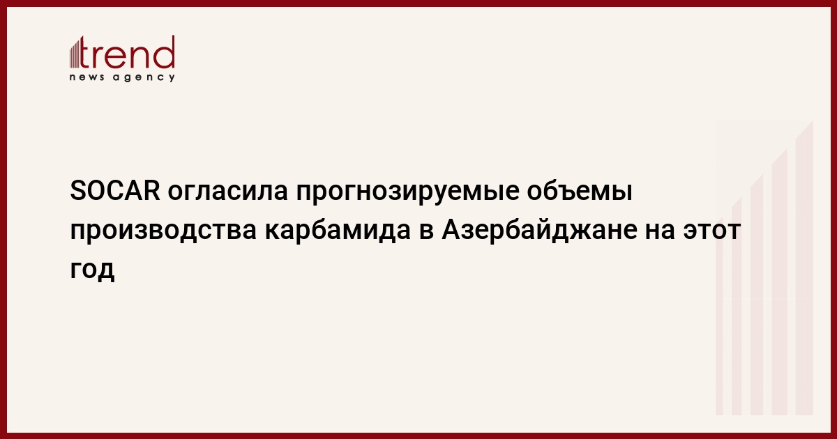 БАКУ /Trend/ - Карбамидный завод азербайджанской госкомпании SOCAR уже в текущем году может произвести около 50 тысяч тонн карбамида, сообщил журналистам директор завода Хаял Джафаров в четверг.