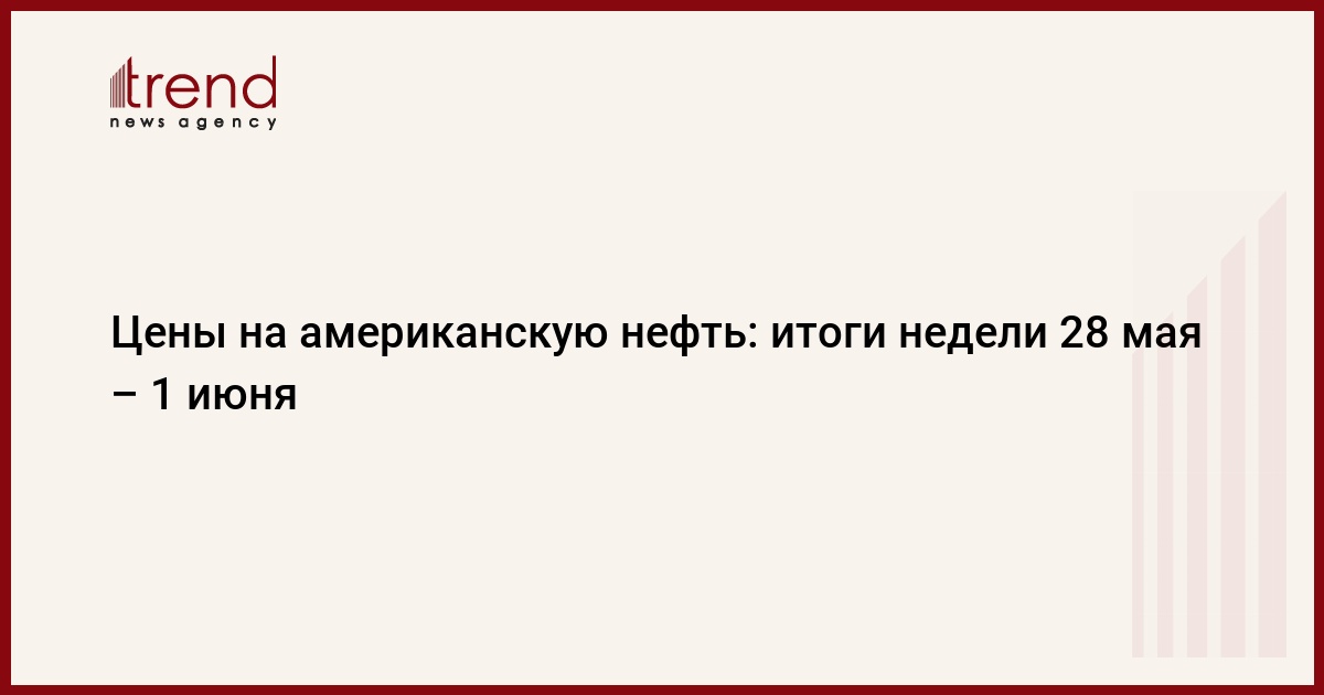 БАКУ /Trend/ - На прошедшей неделе (28 мая – 1 июня) средняя цена на североамериканскую нефть составила 66,66 доллара за баррель, что на 4,19 доллара ниже аналогичного показателя предыдущей недели.