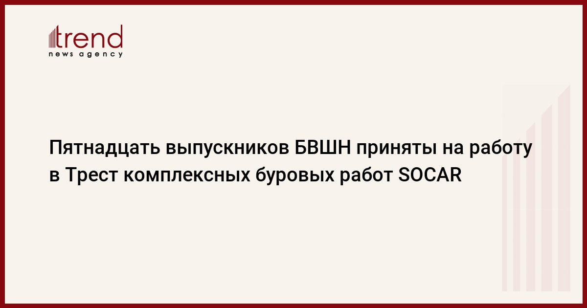 Как говорится в сообщении Высшей школы нефти, распространенном в среду, пятнадцать молодых специалистов, окончивших вуз в этом году, получили предложение о работе в Тресте комплексных буровых работ SOCAR: 12 из них зачислены в штат в качестве буровых инженеров, двое – на должности инженеров-геологов, и один выпускник принят на должность инженера по электронике. Примечательно, что они были приняты на работу в компании без прохождения конкурса и предварительных собеседований.