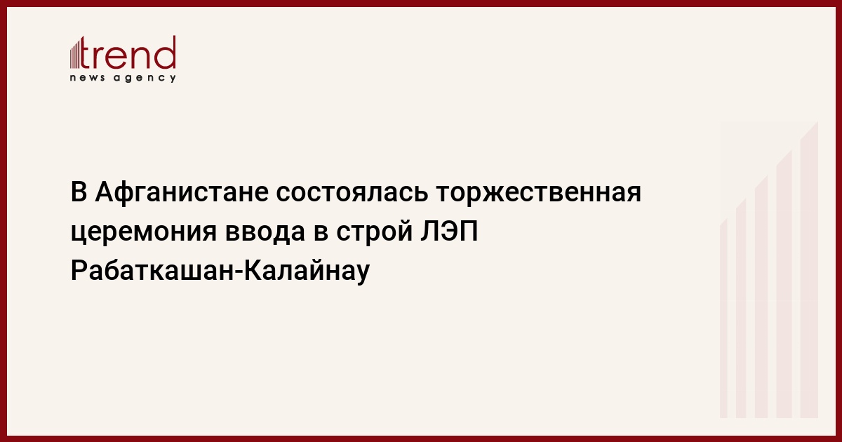 БАКУ /Trend/ - В городе Калайнау велаята Батхыз Исламской Республики Афганистан 26 июля состоялась торжественная церемония ввода в эксплуатацию 110-киловольтной линии электропередачи Рабаткашан-Калайнау.