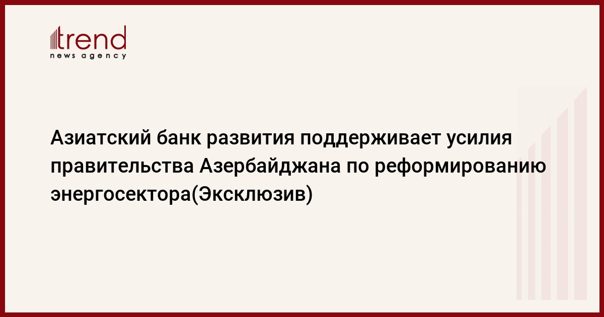 БАКУ /Trend/ - Азиатский банк развития (АБР) поддерживает усилия правительства по реформированию энергетического сектора и обеспечению надежного снабжения электроэнергией домашних хозяйств и предприятий.