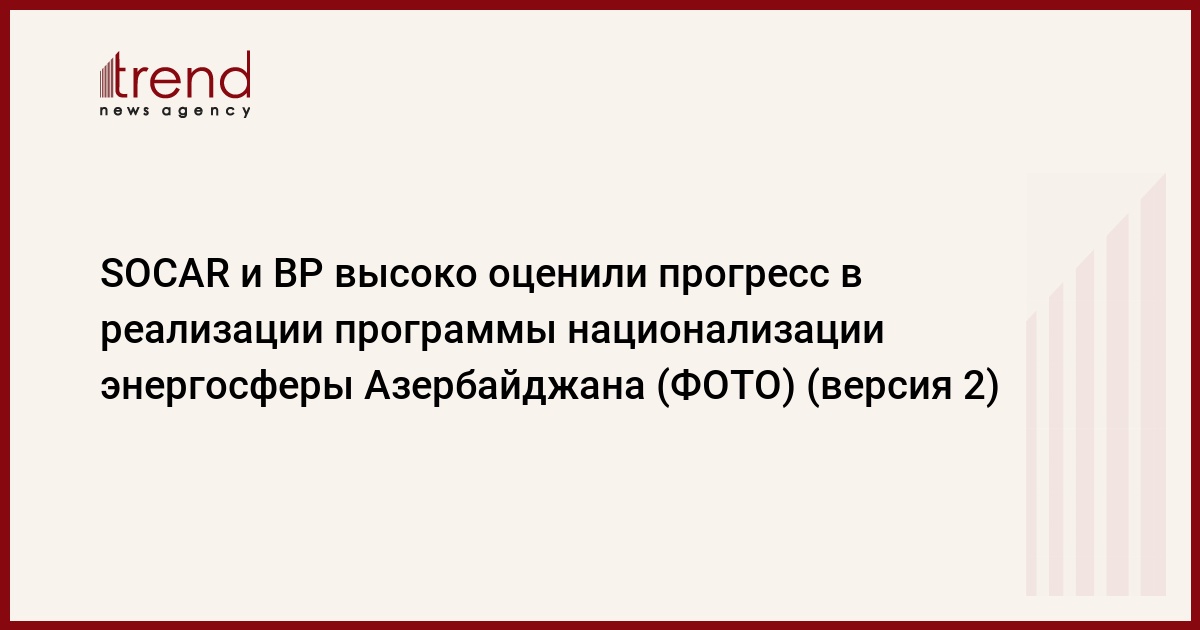 Отметим, что в ноябре 2013 года SOCAR и BP подписали протокол «О сотрудничестве в сфере национализации», а в феврале 2014 года SOCAR и министерство труда и социальной защиты населения Азербайджана подписали соответствующий меморандум о сотрудничестве.