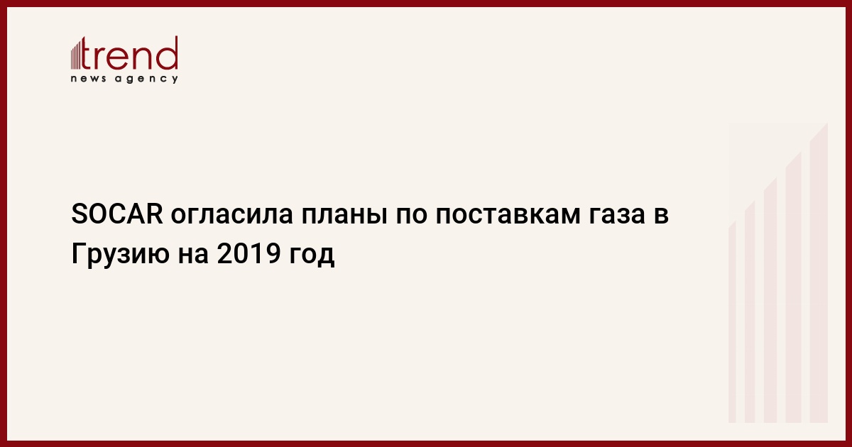 БАКУ /Trend/ - SOCAR Energy Georgia (грузинская "дочка" азербайджанской госкомпании SOCAR) планирует в 2019 году поставить в Грузию около 1,8 миллиарда кубометров газа, сообщили Trend в компании.