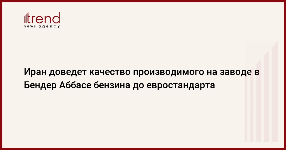 БАКУ /Trend/ - До конца текущего иранского года (начался 21 марта 2018 года) качество бензина, производимого на нефтеперерабатывающем заводе в иранском Бендер Аббасе, повысится до евростандарта.