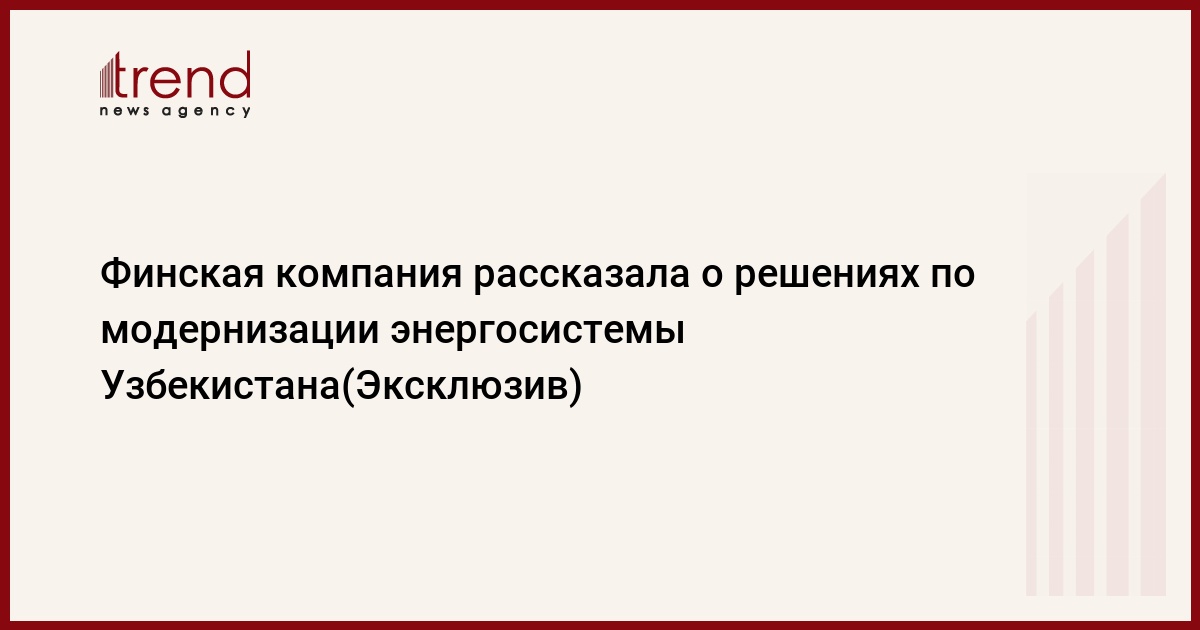 Недавно информагентство Trend сообщило, что Wärtsilä сотрудничает с Узбекистаном в реформировании энергетического сектора страны путем моделирования энергетических систем и оптимизации активов.