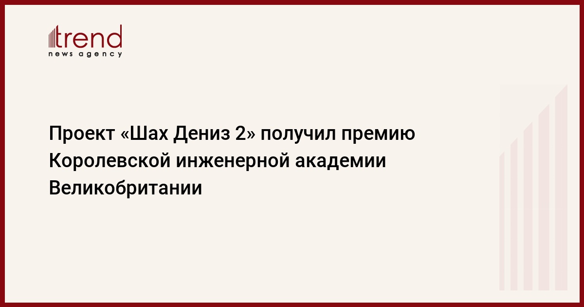 БАКУ/Trend/ - Инженеры, задействованные в реализации проекта второй стадии разработки азербайджанского газоконденсатного месторождения «Шах Дениз», получили награду «Крупный проект» Королевская инженерная академии Великобритании на 2019 год за сотрудничество в реализации этого проекта, передает в пятницу Trend со ссылкой на Королевскую инженерную академию.