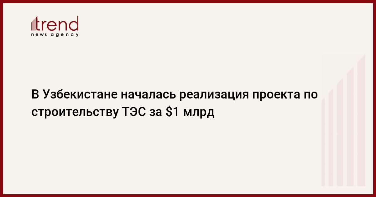 БАКУ/Trend/- В Узбекистане началась подготовка проекта по строительству тепло-электро станции (ТЭС) мощностью 1300 мегаватт в Сырдарьинской области с предварительной стоимости более 1 миллиарда долларов, сообщает Trend со ссылкой на Агентство по развитию ГЧП.