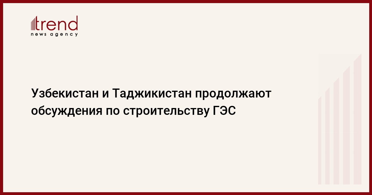 БАКУ /Trend/ - Узбекистан и Таджикистан продолжают обсуждение проекта Межправительственного Соглашения о порядке и условиях долевого участия в строительстве и эксплуатации ГЭС в бассейне реки Зарафшан, сообщает Trend со ссылкой на пресс-службу министерства энергетики Узбекистана.