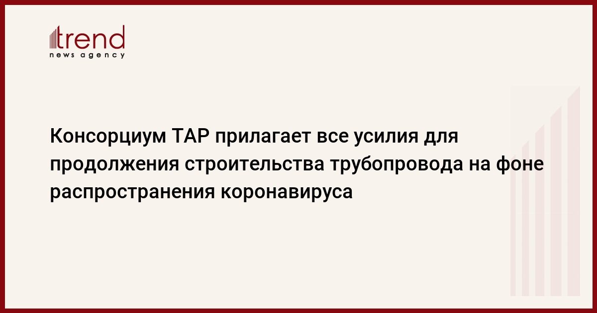 БАКУ/ Trend/ - Консорциум TAP AG, занимающийся реализацией проекта Трансадриатического трубопровода (TAP), предусматривающего транспортировку азербайджанского газа в Европу, делает все возможное для продолжения строительства трубопровода в условиях распространения коронавируса, сообщает Trend со ссылкой на консорциум.