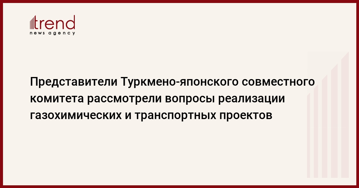 БАКУ /Trend/ - Представители Туркмено-японского Совместного комитета рассмотрели реализацию совместных проектов в газохимической и транспортной сферах, сообщает Trend со ссылкой на министерство иностранных дел Туркменистана.