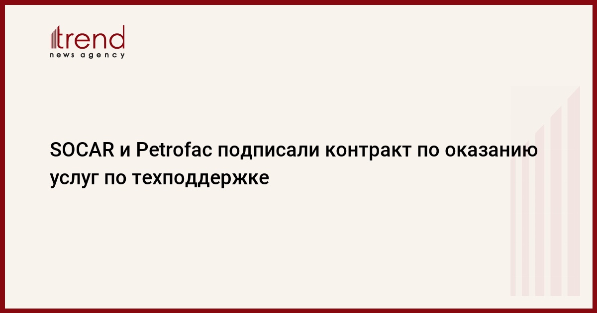 БАКУ /Trend/ - SOCAR Midstream Operations Limited, которая является «дочкой» государственной нефтяной компании Азербайджана SOCAR, и отдел инженерных и производственных услуг британской компании Petrofac подписали контракт на оказание вспомогательных услуг по передаче технического руководства Южно-Кавказского трубопровода SOCAR, передает Trend в пятницу со ссылкой на SOCAR.