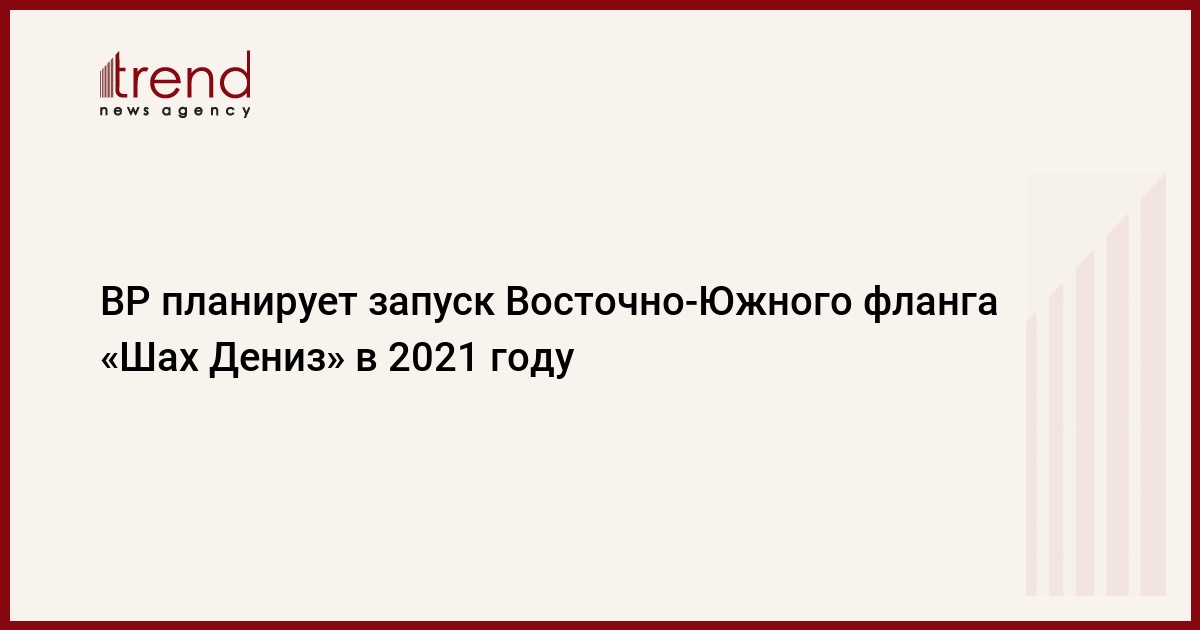 БАКУ / Trend / - ВР планирует запуск Восточно-Южного фланга азербайджанского газоконденсатного месторождения «Шах Дениз» в 2021 году, сообщает Trend со ссылкой на отчет BP.