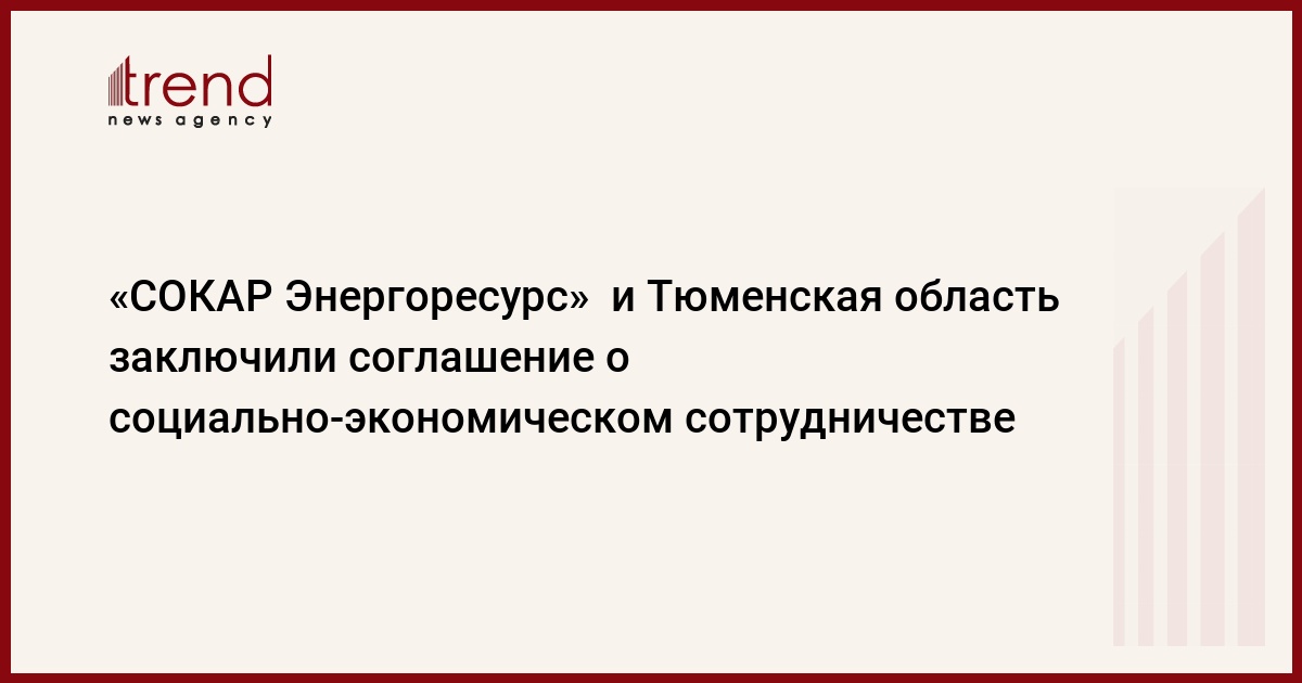 БАКУ/Trend/ - «СОКАР Энергоресурс» и Тюменская область заключили соглашение о социально-экономическом сотрудничестве, сообщает Trend со ссылкой на российские СМИ.