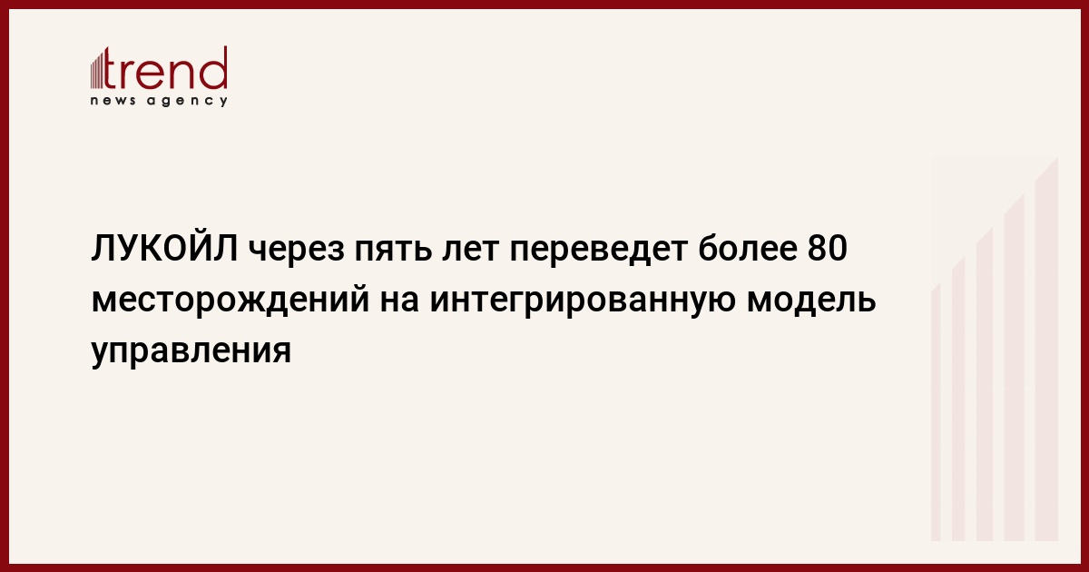 «Интегрированная модель управления отлично себя зарекомендовала, поэтому ЛУКОЙЛ планирует через пять лет перевести на такую модель 83 месторождения, занимающие 70 процентов в общем объеме нефтедобычи. На данный момент на месторождениях компании работают 33 интегрированные модели»,- сказали в ЛУКОЙЛ.