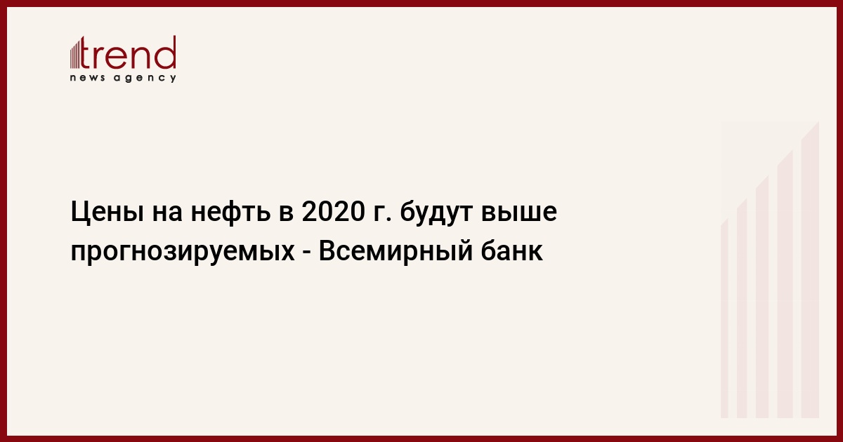 БАКУ /Trend/ - В 2020 году цены на нефть в среднем составят 44 доллара за баррель, что выше прогнозируемого показателя в 41 доллар за баррель в текущем году, но все же значительно ниже, чем их уровень 2019 года, составлявший 61 доллар за баррель, сообщает Trend со ссылкой на Всемирный банк (ВБ).
