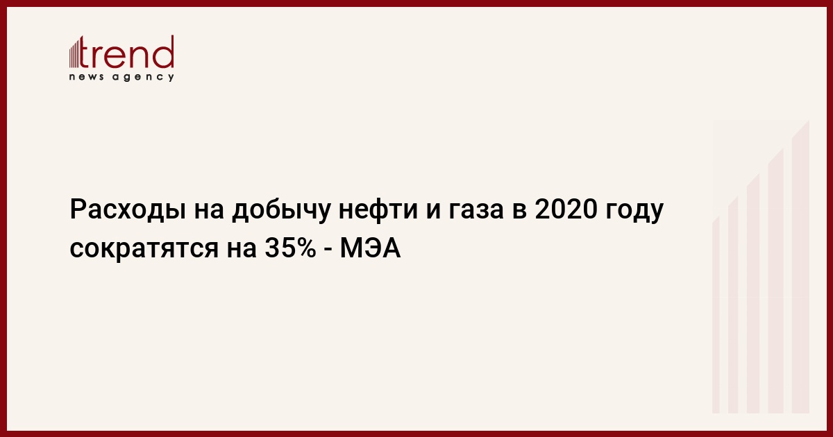 БАКУ /Trend/ - Инвестиции в поставки топлива по-прежнему страдают сильнее всего, а расходы на добычу нефти и газа в 2020 году сократятся на 35 процентов, сообщает Trend со ссылкой на Международное энергетическое агентство (МЭА).