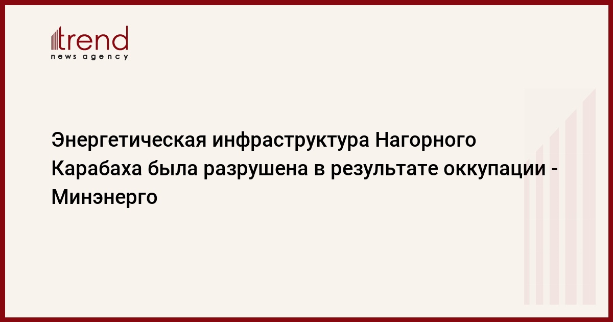 БАКУ /Trend/ - В результате оккупации армянскими вооруженными силами азербайджанских земель энергетическая инфраструктура региона Нагорного Карабаха была разрушена.