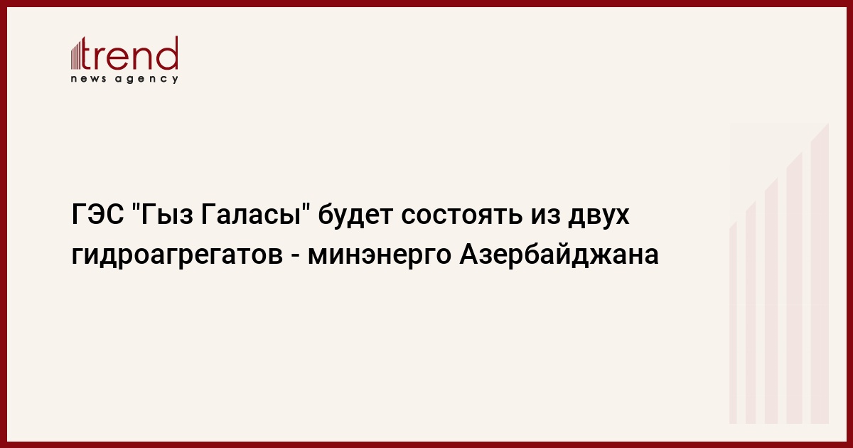 БАКУ /Trend/ - Гидроэлектростанция "Гыз Галасы", которую планируется построить на реке Араз в Нагорном Карабахе, будет состоять из двух гидроагрегатов, каждый мощностью 20 мегаватт.