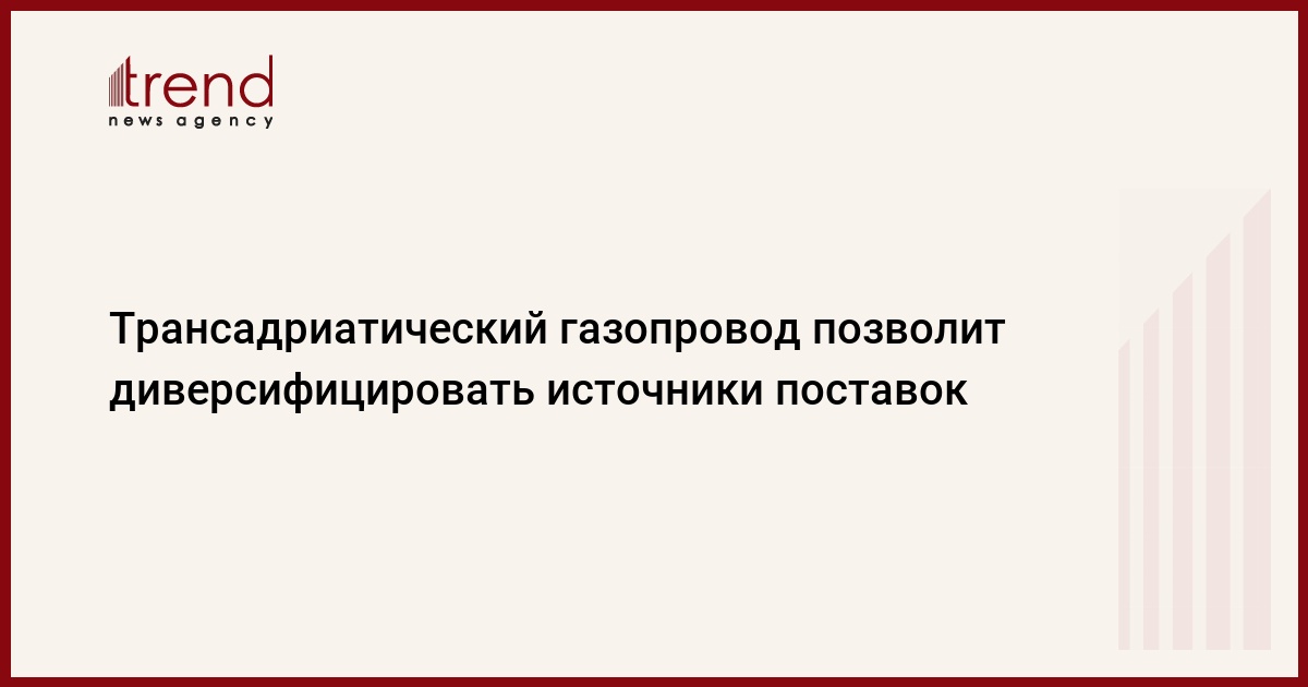 БАКУ /Trend/ - Трансадриатичный газопровод, который будет сдан в эксплуатацию в ближайшее время и транспортирует азербайджанский газ европейским потребителям, позволит диверсифицировать источники поставок.